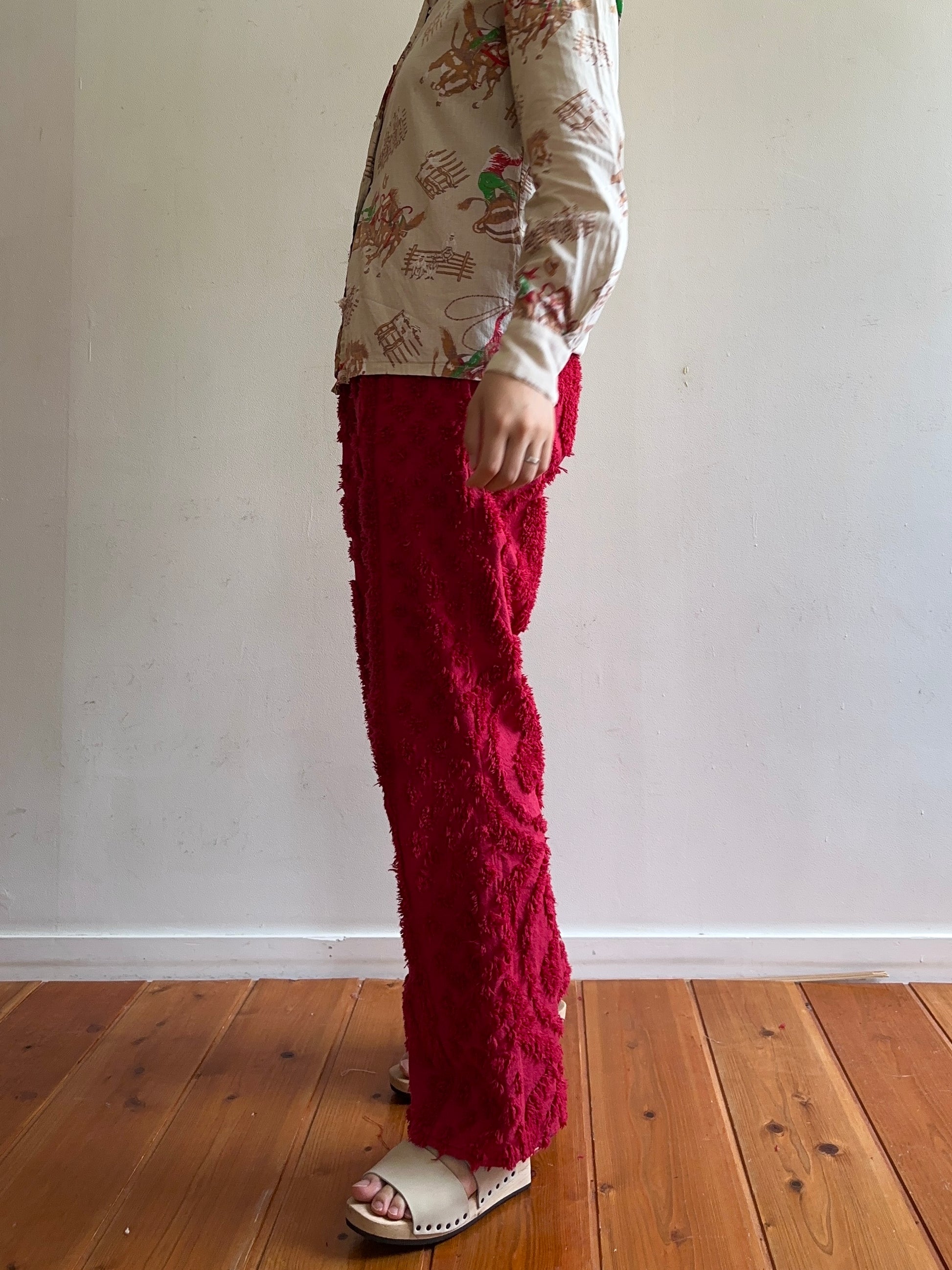 old chenille slim flare pants / ruby