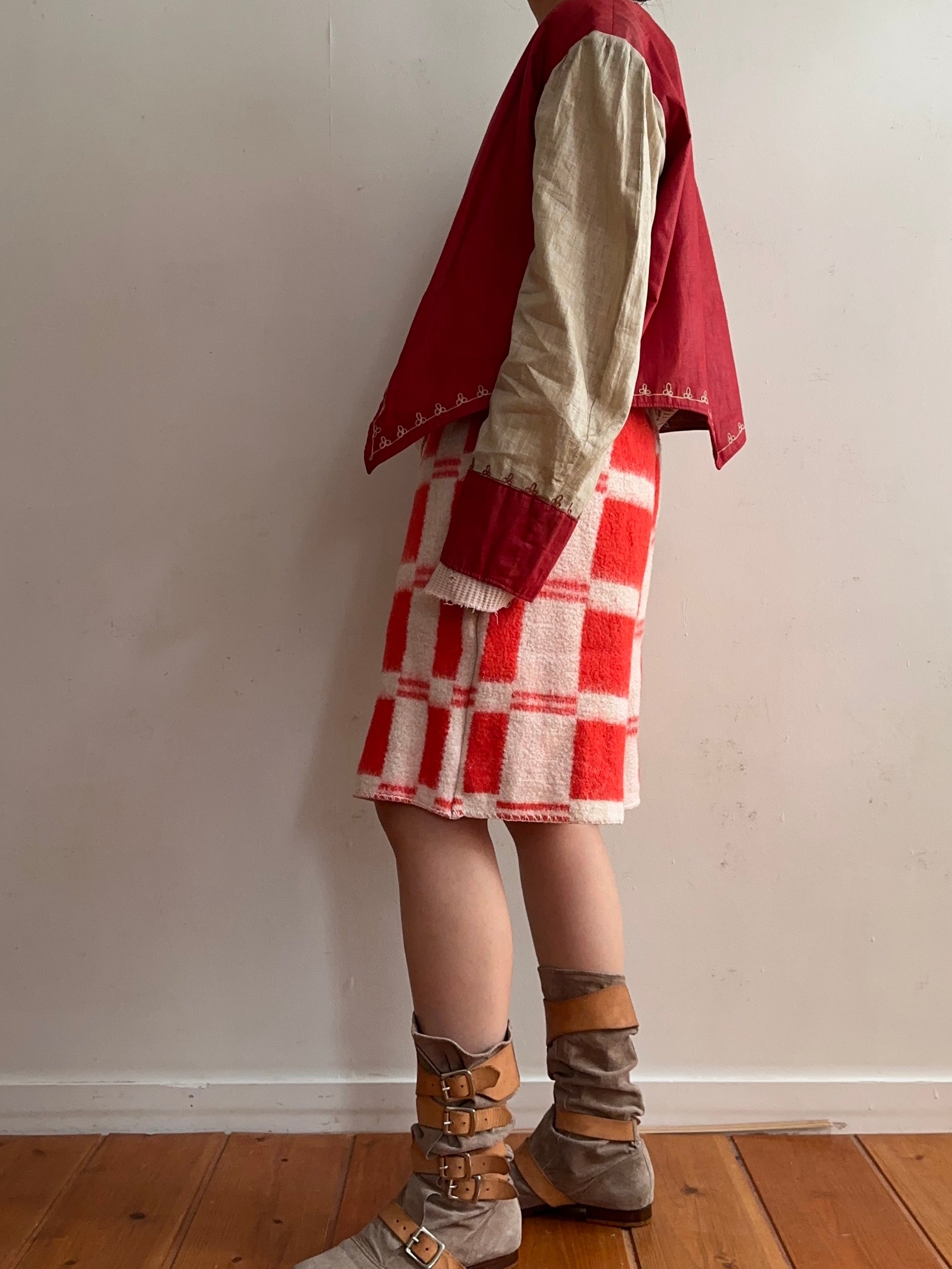 オールドブランケットで仕立てたロングパンツ